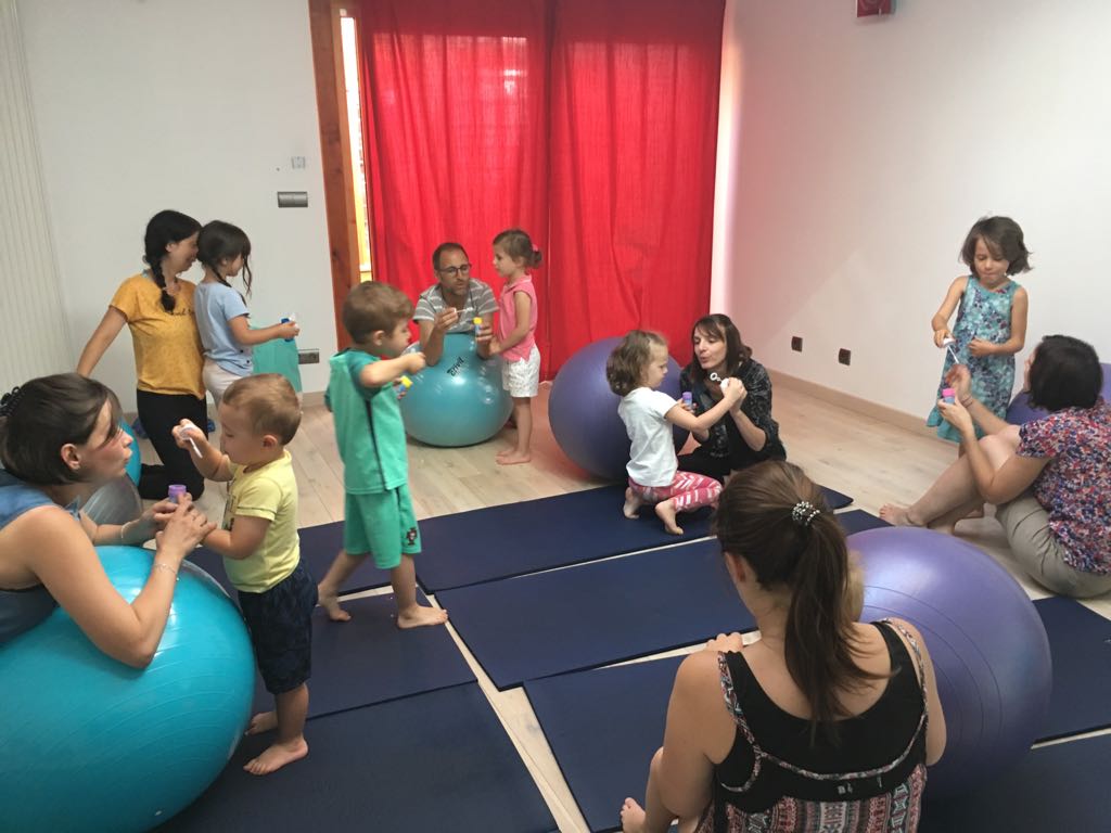 Ces ateliers favorisent une communication non verbale. C'est aussi la découverte du bien-être et la prise de conscience de son corps. Ces ateliers sont adaptés et différents selon les âges. Ils se déroulent en séance collective, pas plus de six duos (parent/enfant) en regroupant des moyennes d'âge.